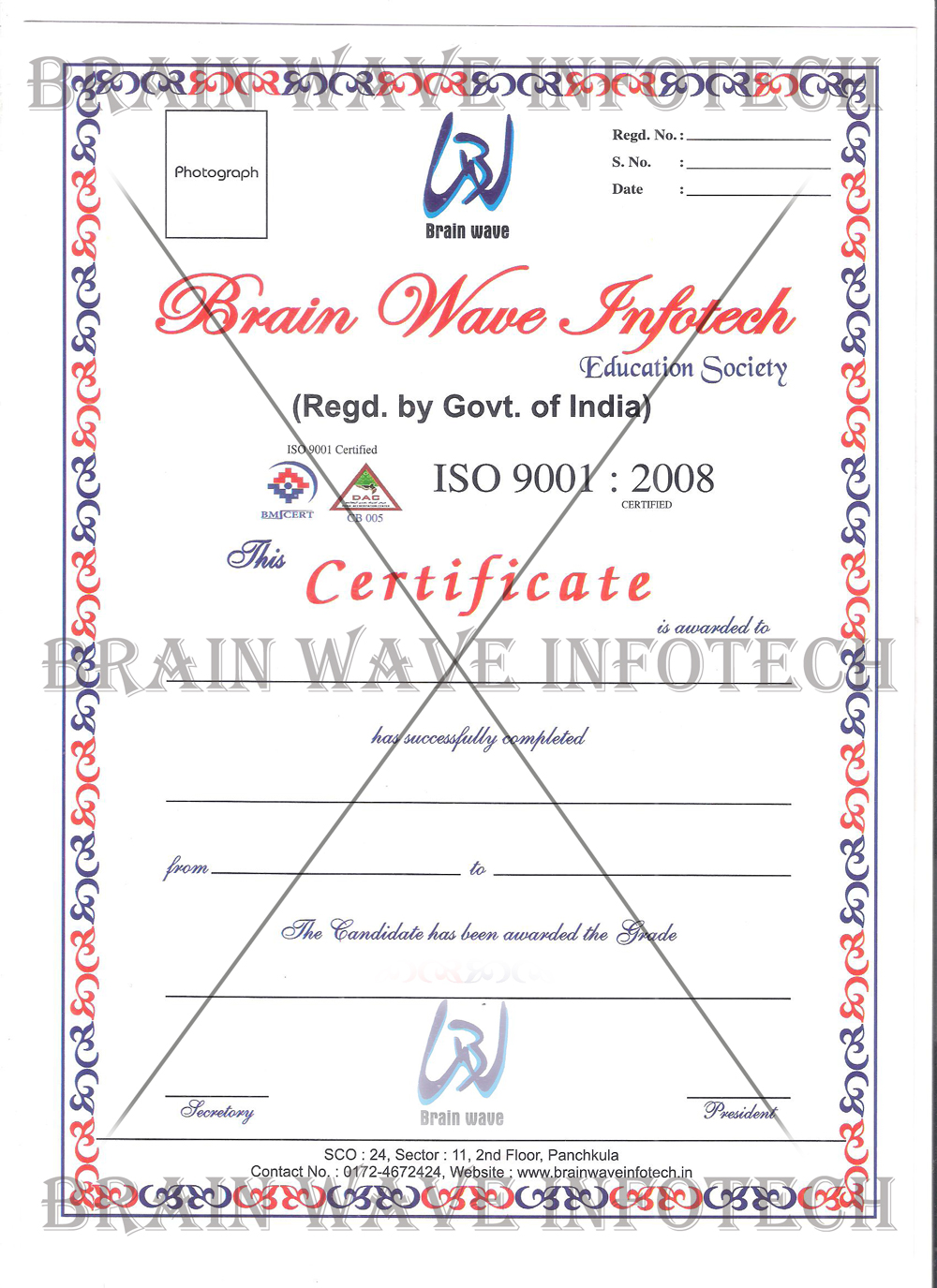 Brainwave infotech is Registered Education society under the Act 1956 Brainwave is also have ISO certified. Brainwave provide their services in education sector since 2008. Brainwave provide different section like Btech, MCA MBA, Msc., BBA, BCA, PGDCA and many more. Brainwave also have franchise of Hardicon (A organization of ministry of finance) Under this franchise Brainwave provide Govt. training in Panchkula. The main aim of our institution is to look into the overall growth of a student apart from computer education. What they learn in their home, school and colleges is not enough to survive in this globalized world. Hence the Institute prepares students in all aspects to face the challenges in both professional as well as personal life. Regarding the same, Brainwave Infotech also conducts Personality Development Programs for Students, Teachers and Lecturers in different colleges and schools.